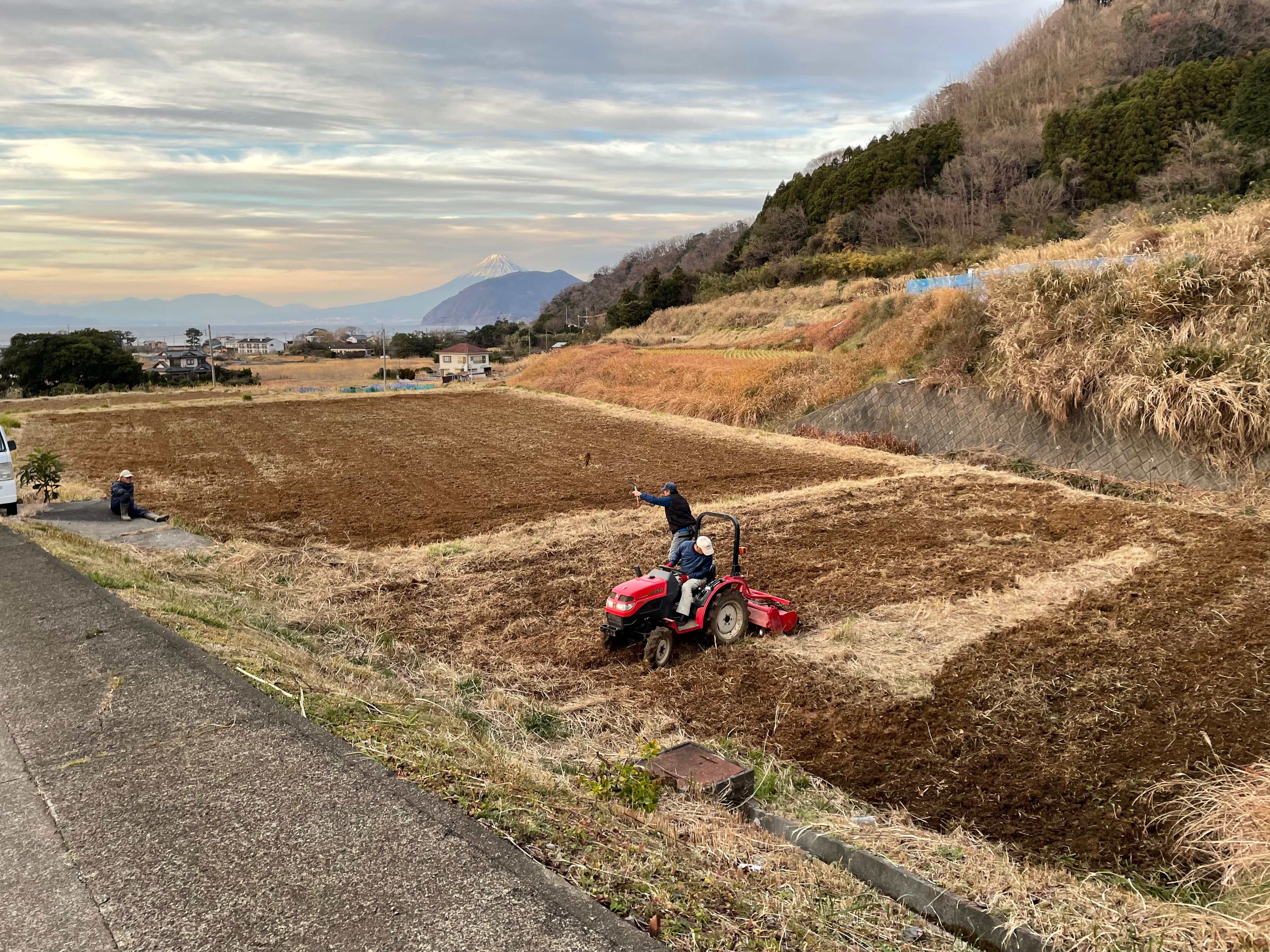 青木ファームを立ち上げたのは、耕作放棄地が増え西伊豆の美しい景観が失なわれることに危機を感じた八木沢地区の方々と弊社社員です。5.5haもあるため、荒れ果てた土地を再生するのはなかなか大変で、建設業の下請けの業者さんにも手伝っていただきました。皆さん作業に慣れていて、とても手際が良かったです。 スタートから5年後の2026年冬、苗木はすくすく育ち、無事本格出荷に至りました。