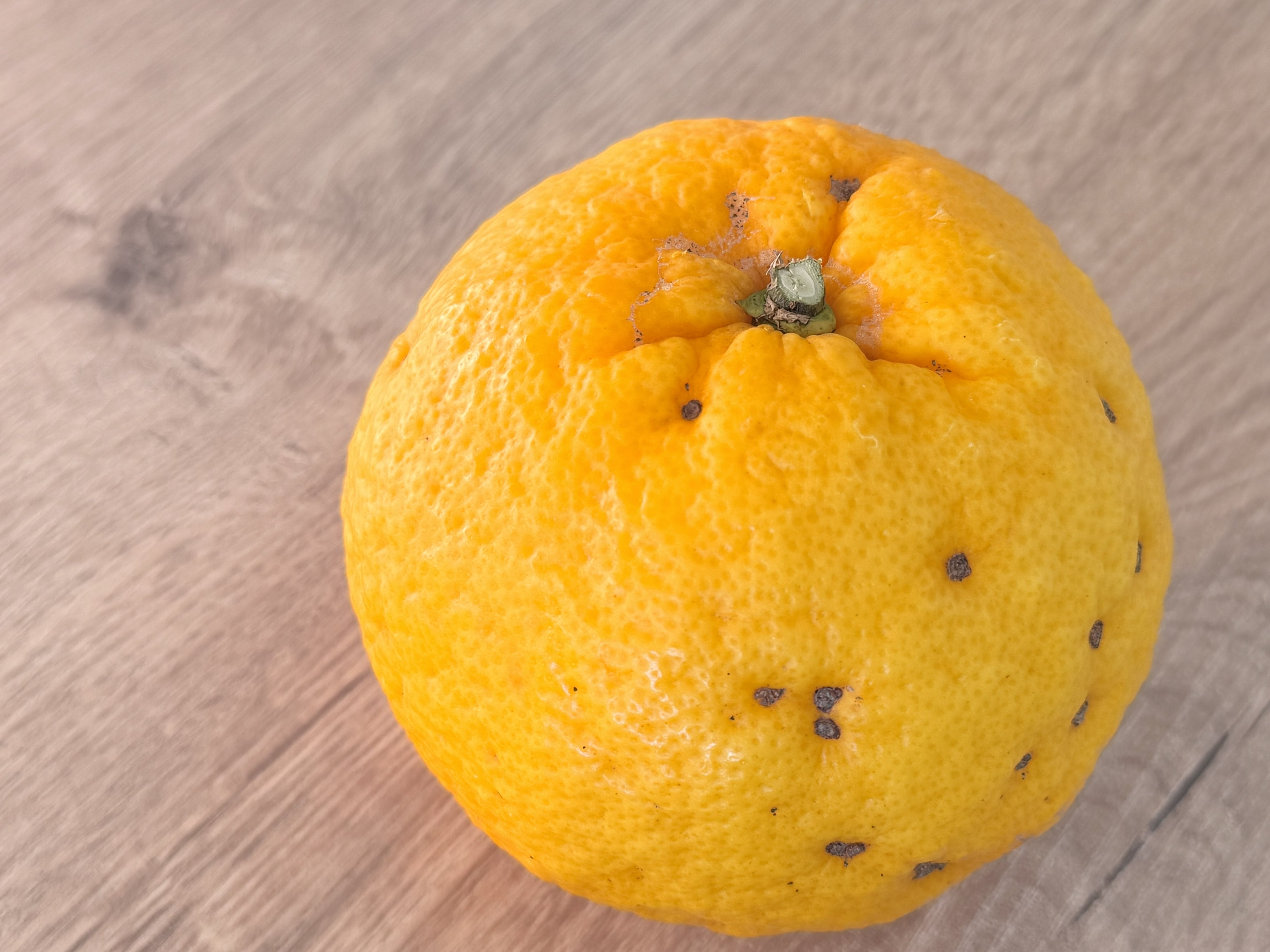 - 農薬の使用を最低限に抑えているため、果皮につく病気の痕や昆虫による小さな傷などがありますが、果実は通常のものと全く変わりません。